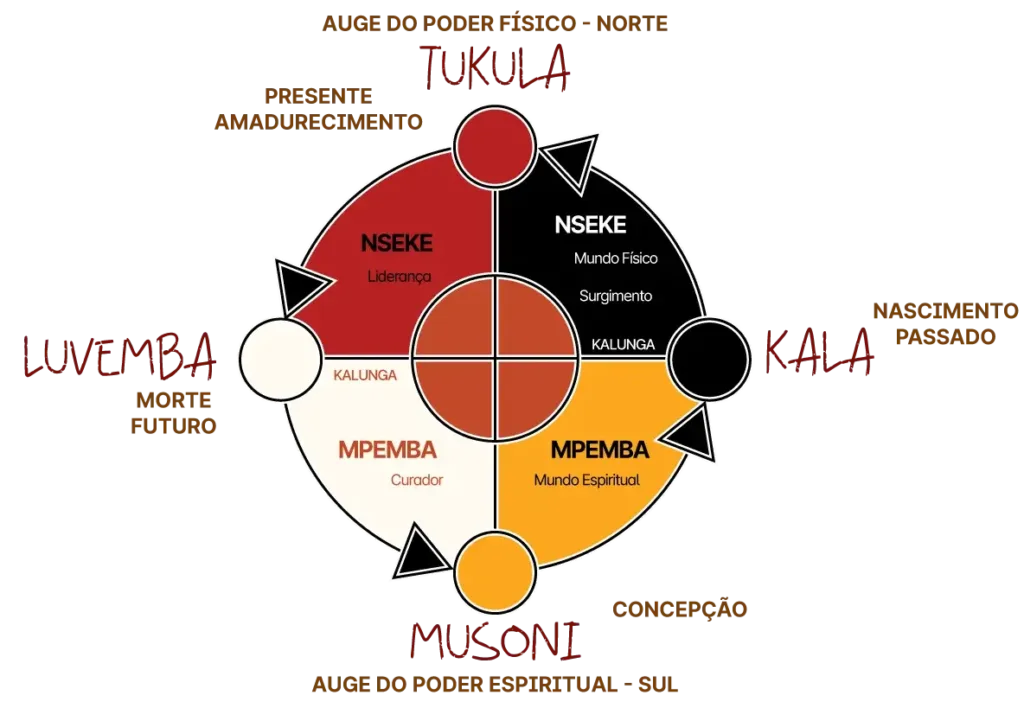 Esse é o círculo da vida ancestral Bantu. Ele mostra os 4 pontos da jornada humana: